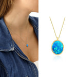 14k Gold | 12mm Oval Blue Opal Necklace