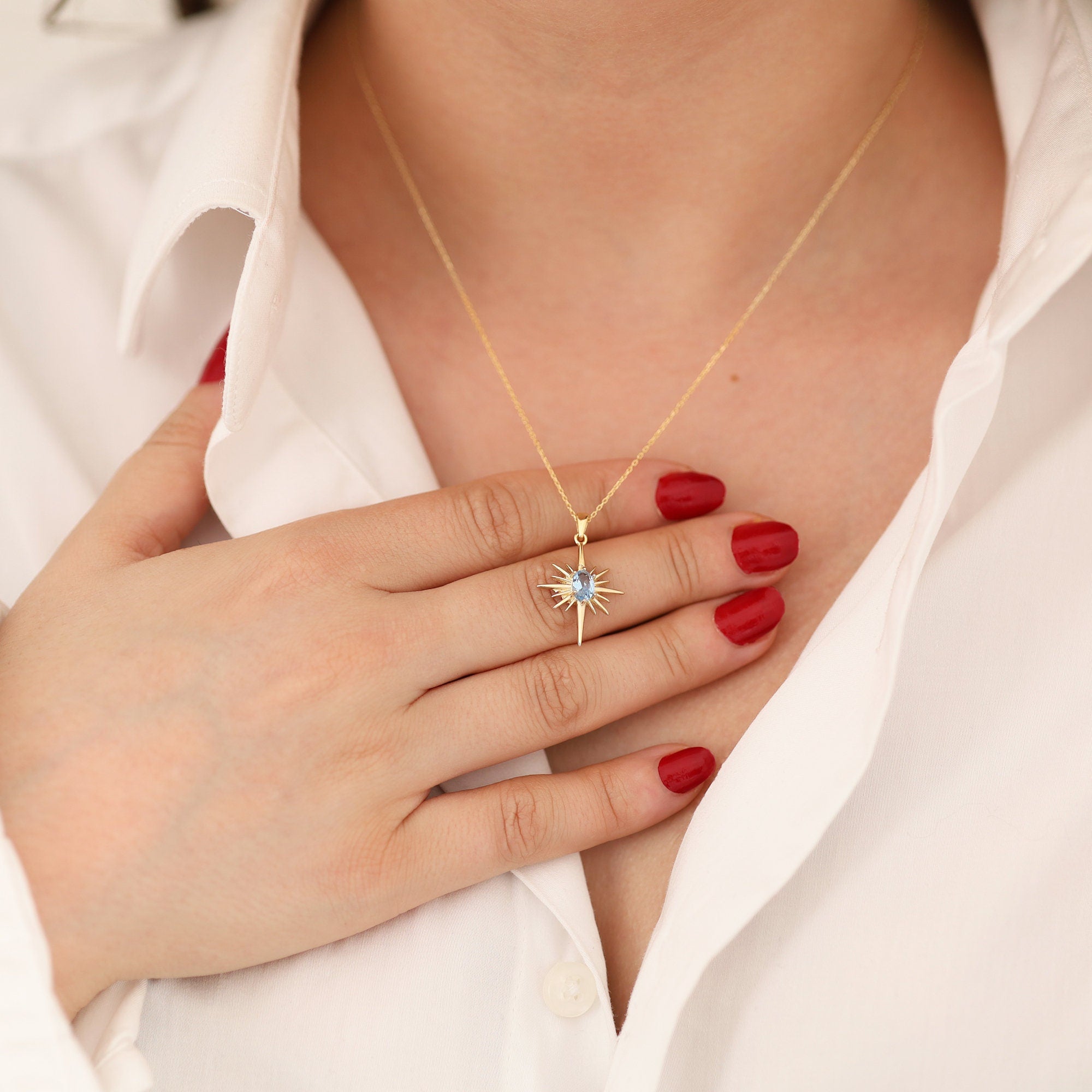 14k Gold | Aquamarine North Star Necklace