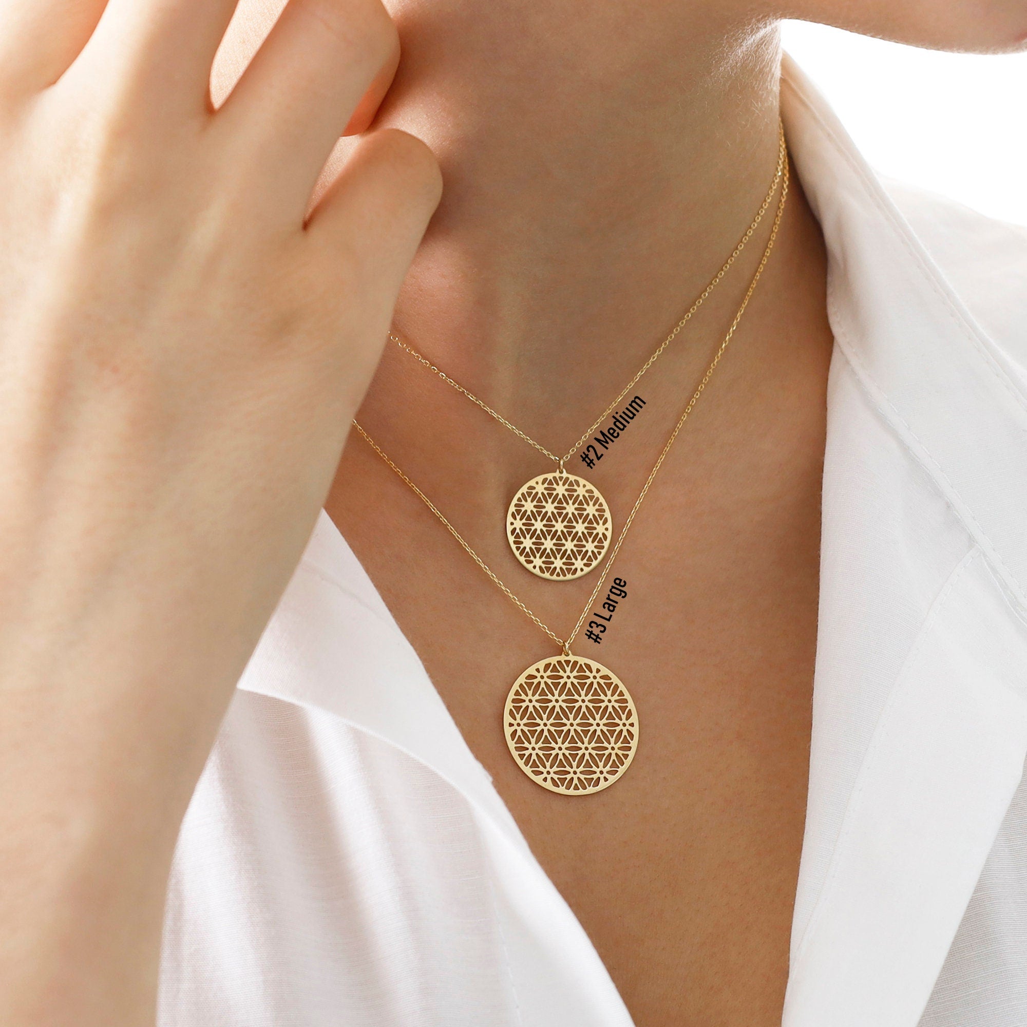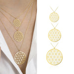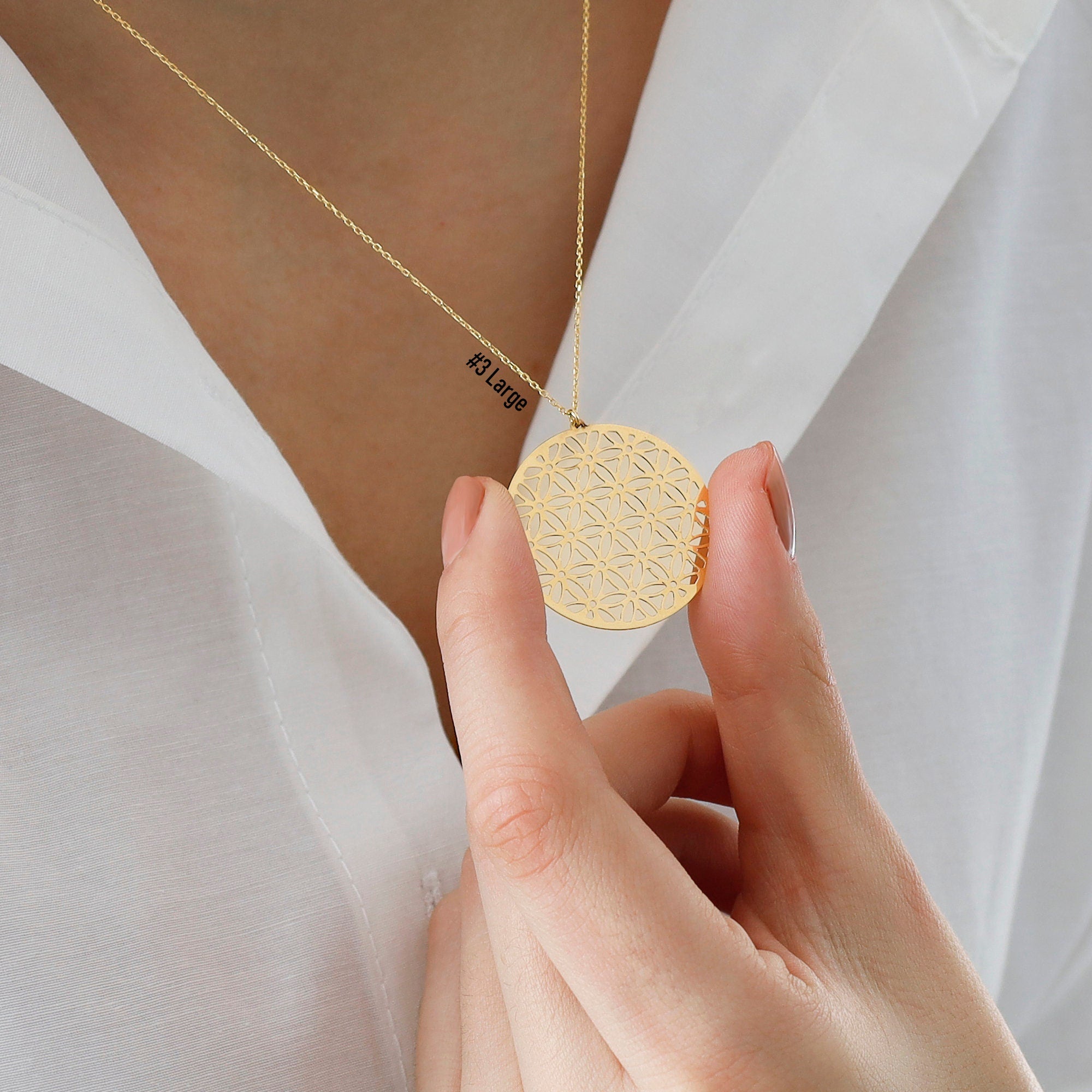 Embrace the beauty of creation with our 14k Gold Flower of Life Necklace. Handcrafted from 14k real gold, this elegant pendant features six delicate petals that symbolize the interconnectedness of all life. Inspired by sacred geometry, it reminds us that we all share the same blueprint. Adjustable and available in three sizes, it is perfect for daily wear or special occasions. Personalize it with custom tags to create a unique gift that inspires unity and inner strength.