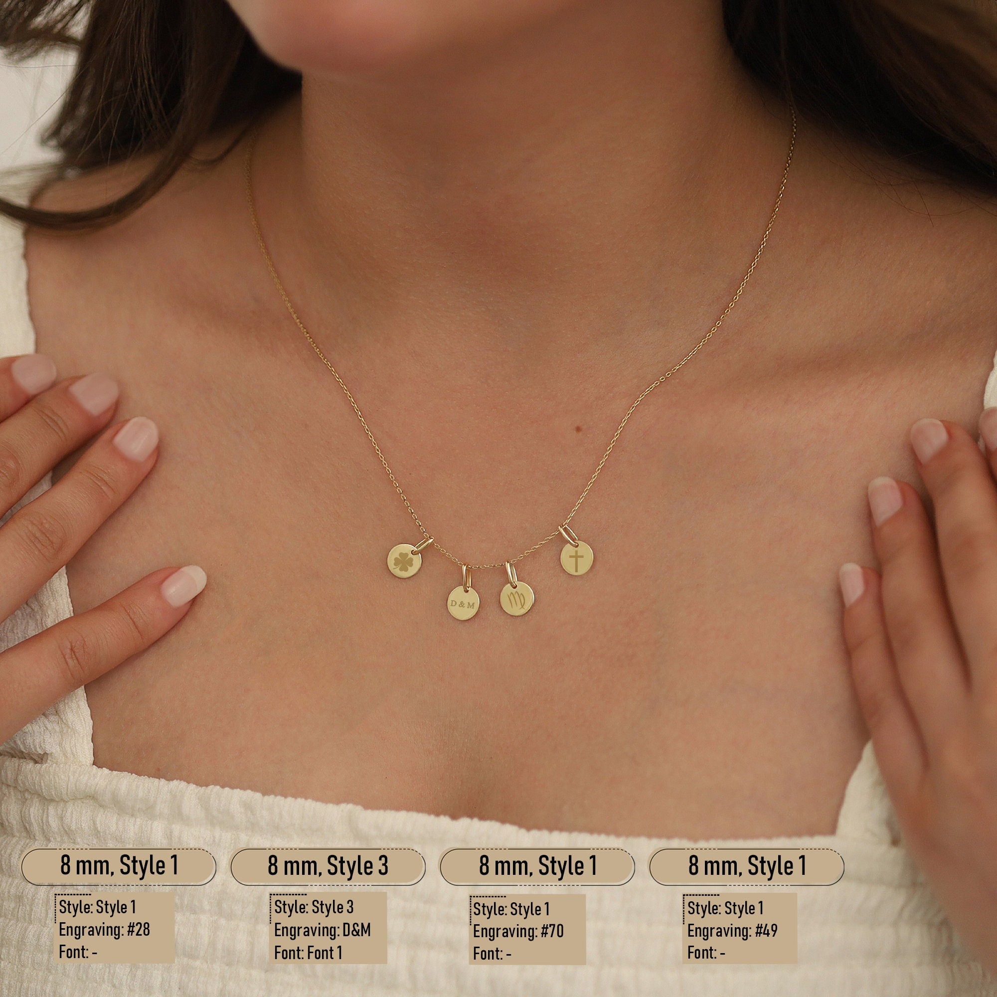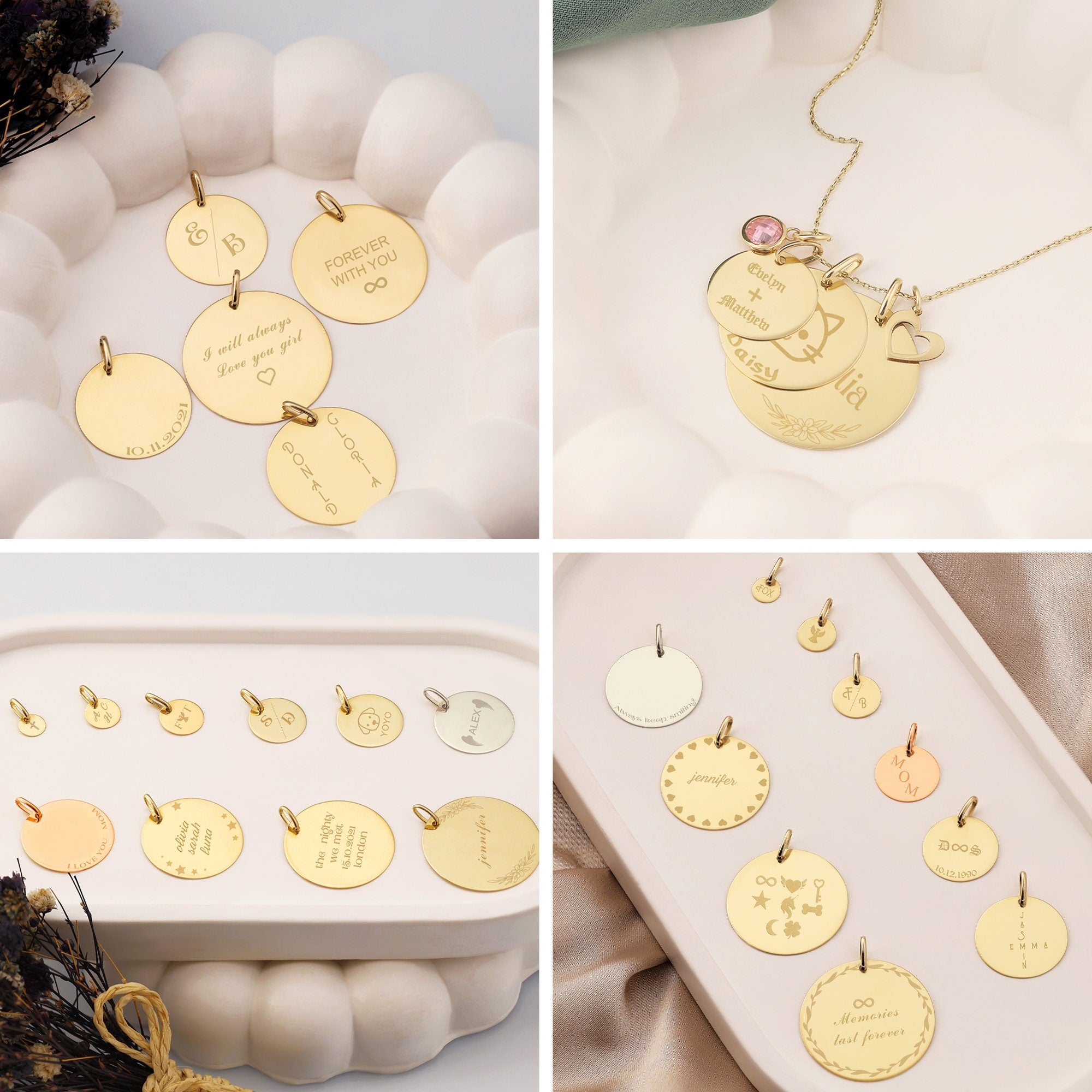 Commemorate life’s special moments with our 14k Gold Personalized Round Disc Necklace. Each disc can be engraved with names, dates, or symbols that matter to you. Whether worn daily or for special events, its sleek design suits every style. Crafted from real gold, it is a lasting keepsake that holds your most cherished memories. Available in multiple sizes, it can adapt to any look. Give it as a heartfelt gift or keep it as your own treasured heirloom.