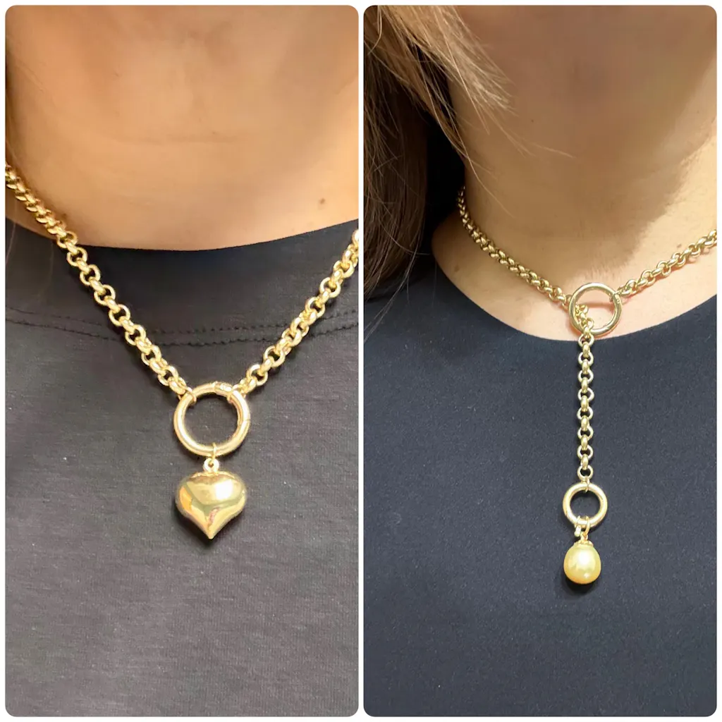 With this 14k Gold Rolo Chain Charm Necklace, you may indulge in the art of personalization. Featuring a balanced blend of classic sophistication and modern charm, it allows you to choose from 18 unique clip-on charms like hearts, moons, and stars. A perfect canvas for self-expression.