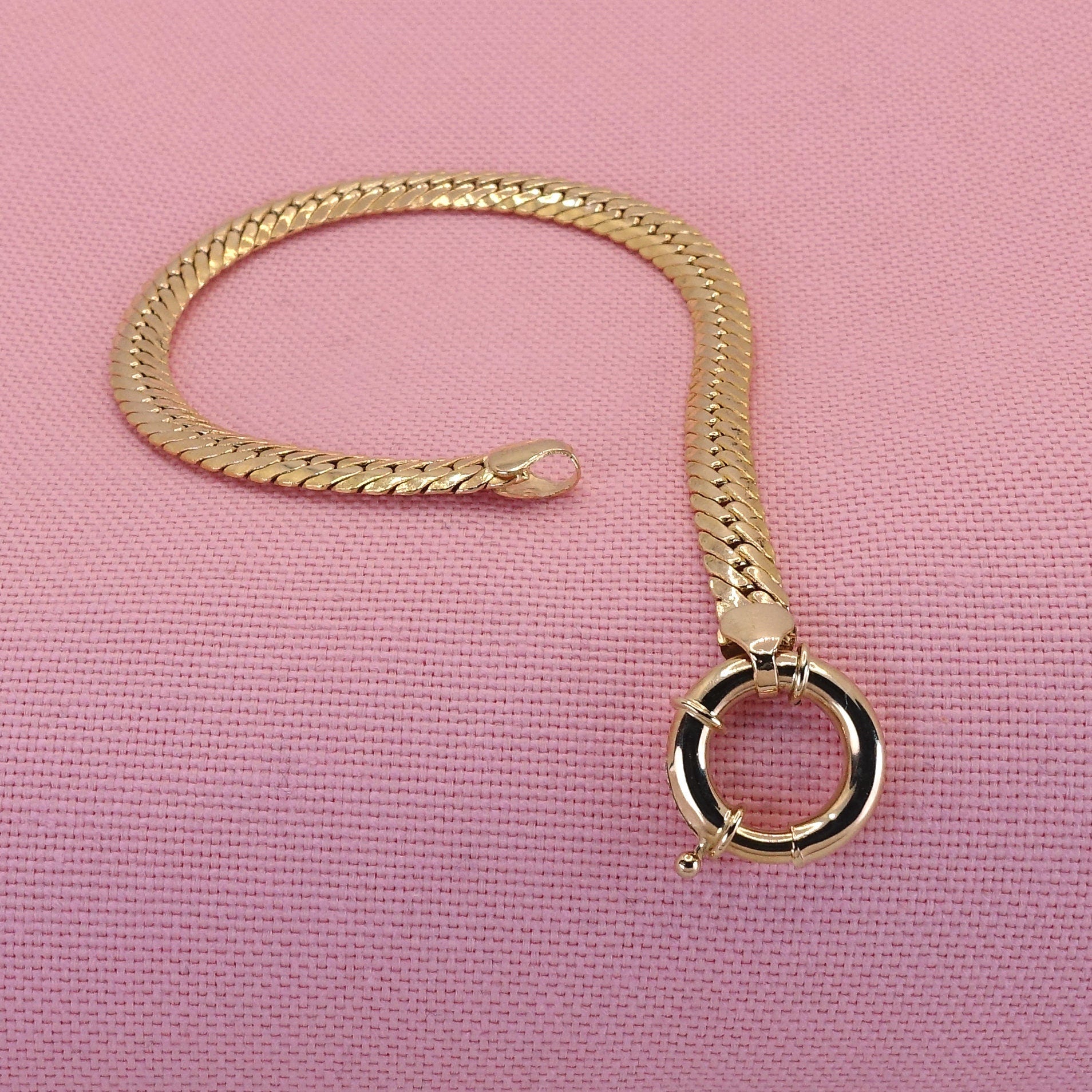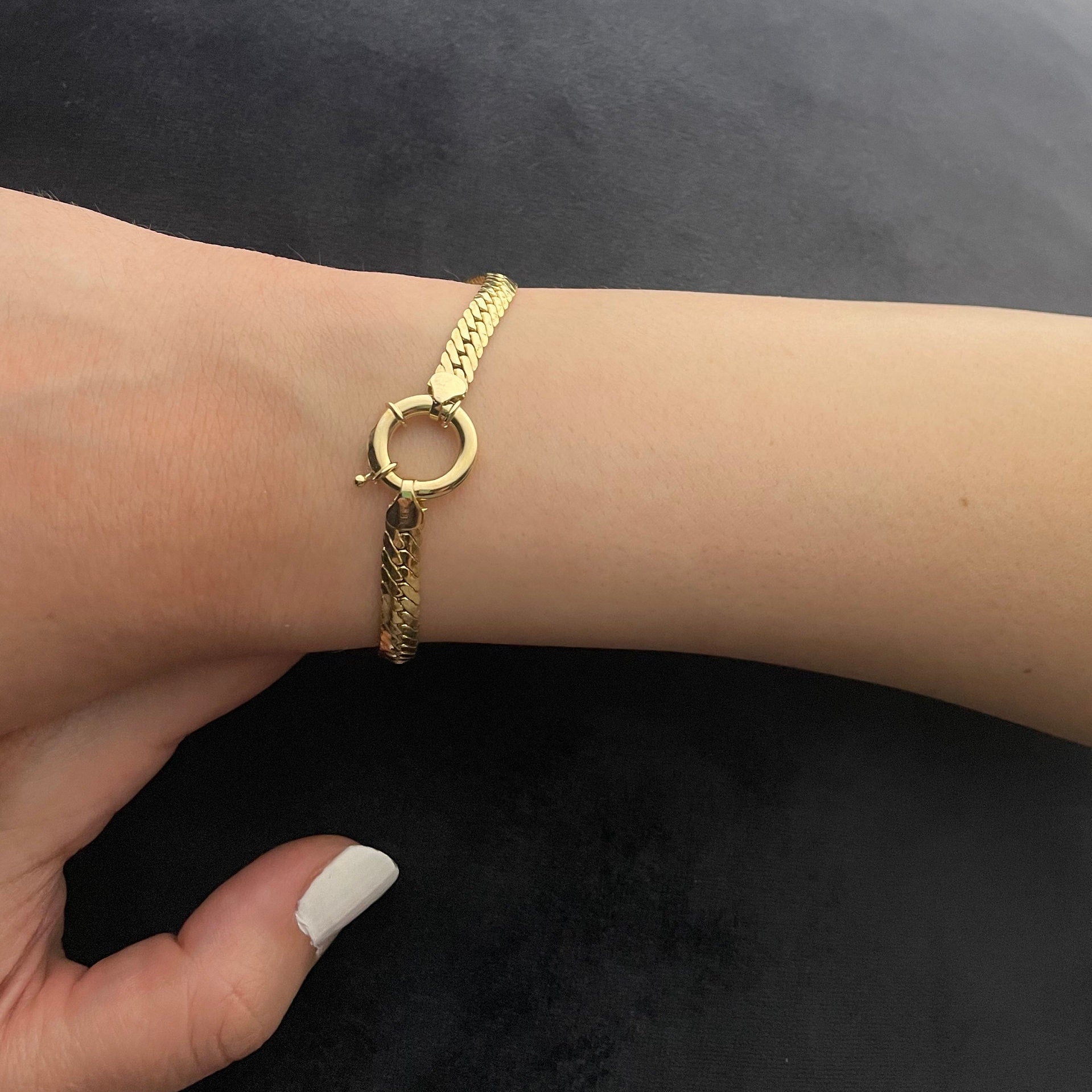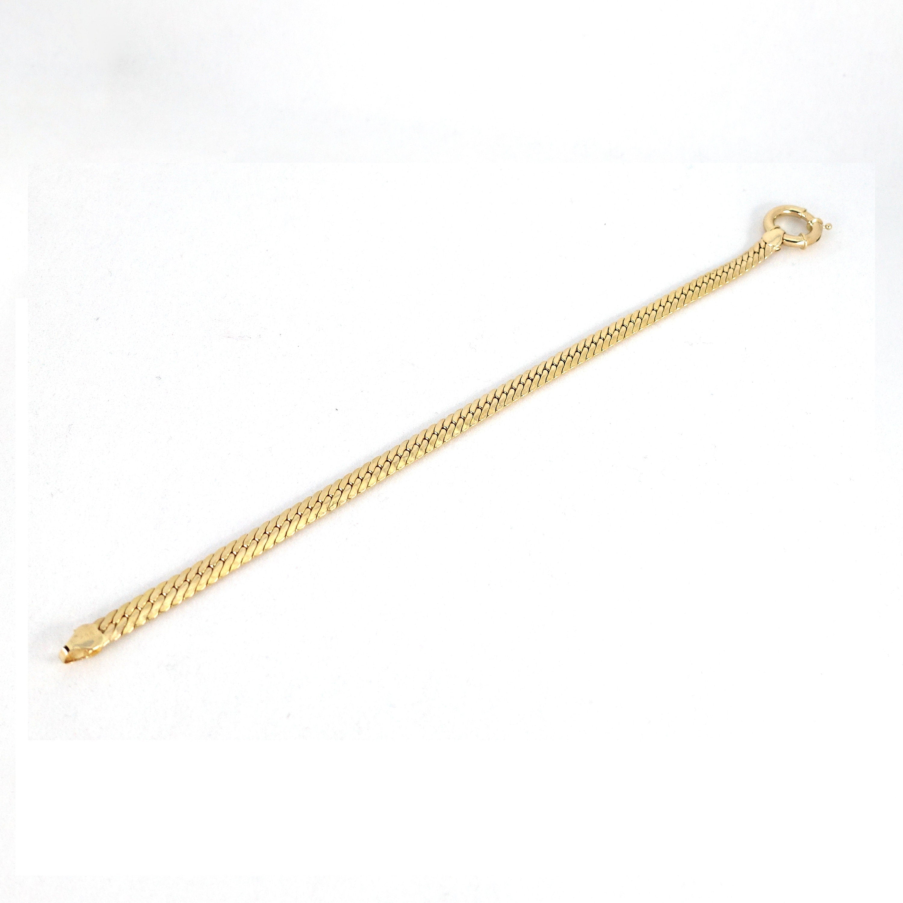 Elevate your style with our 14k Gold 5mm Herringbone Bracelet featuring a classic sailor clasp. This elegant bracelet boasts a flat herringbone chain design, perfect for both casual and formal occasions. The sturdy sailor clasp provides a secure and adjustable fit, ensuring comfort throughout the day. Whether worn alone for a subtle statement or stacked with other bracelets for a trendy look, this herringbone bracelet adds a sophisticated touch to any outfit.