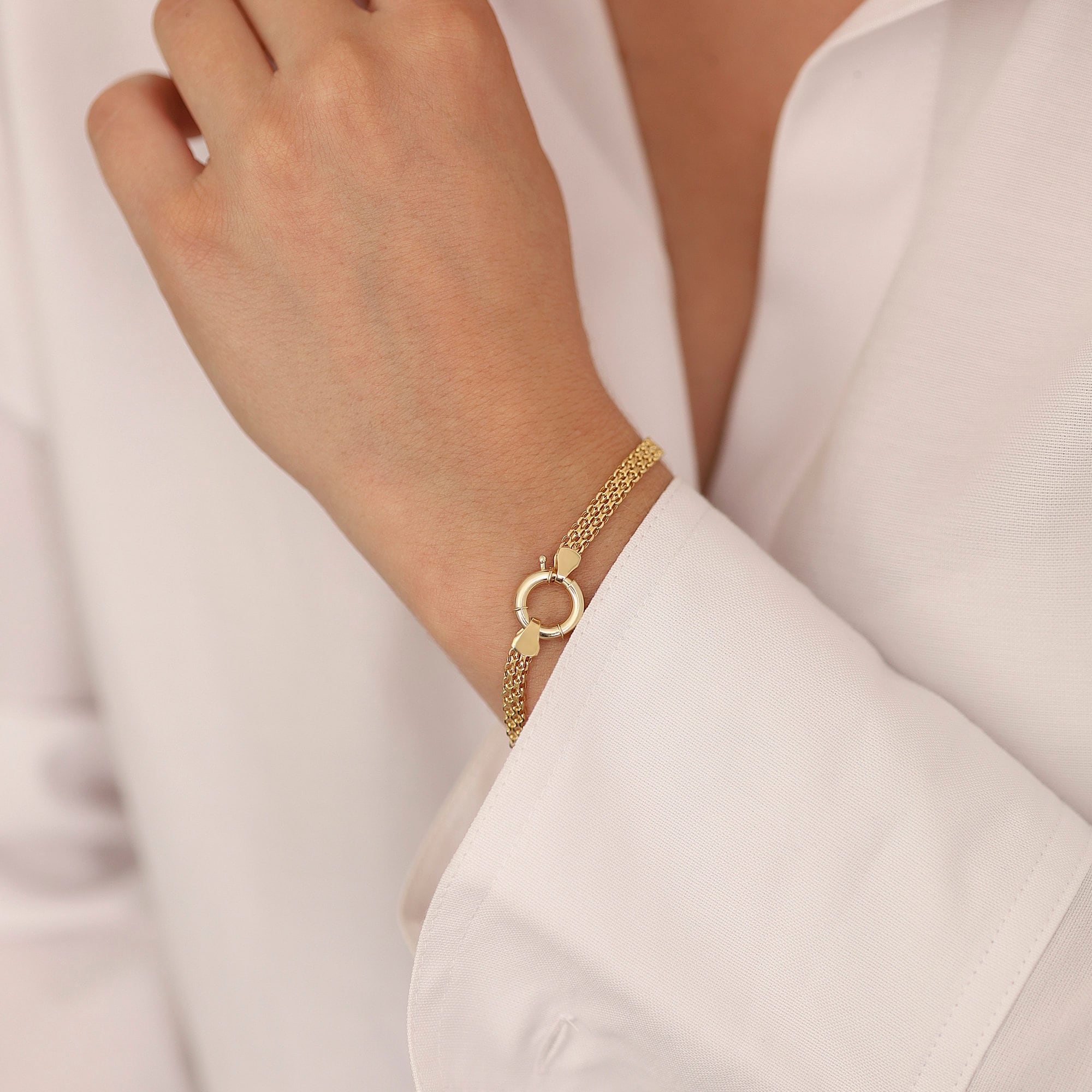Elevate your style with our 14k Gold Bismarck Mesh Chain Bracelet featuring a stylish sailor lock clasp. This iconic bracelet combines timeless beauty with Italian craftsmanship, showcasing a delicate 4mm mesh chain that exudes sophistication and charm. Customize your bracelet with up to 18 beautiful charms, including hearts, keys, padlocks, and stars, each reflecting your personal story. Crafted from premium 14k gold, this versatile bracelet is perfect for everyday wear or special occasions.
