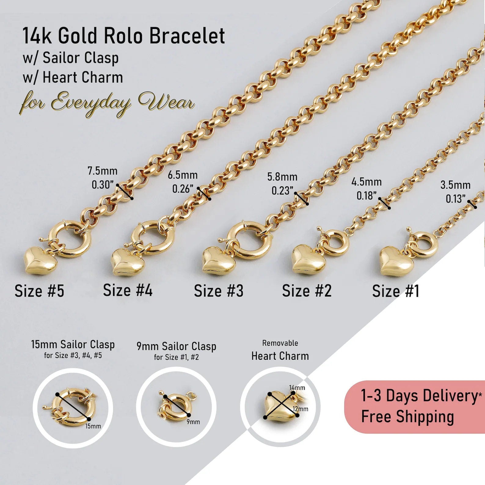 Enhance your collection with our 14k Gold Rolo Bracelet featuring a stylish sailor clasp. Available in five versatile widths, this belcher chain bracelet combines delicate design with enduring strength. Perfect for everyday wear or special occasions, you can mix, match, and layer different widths to express your unique style or let a single bracelet stand out. Crafted from high-quality 14k gold, this adaptable luxury piece adds a sophisticated touch to any ensemble.