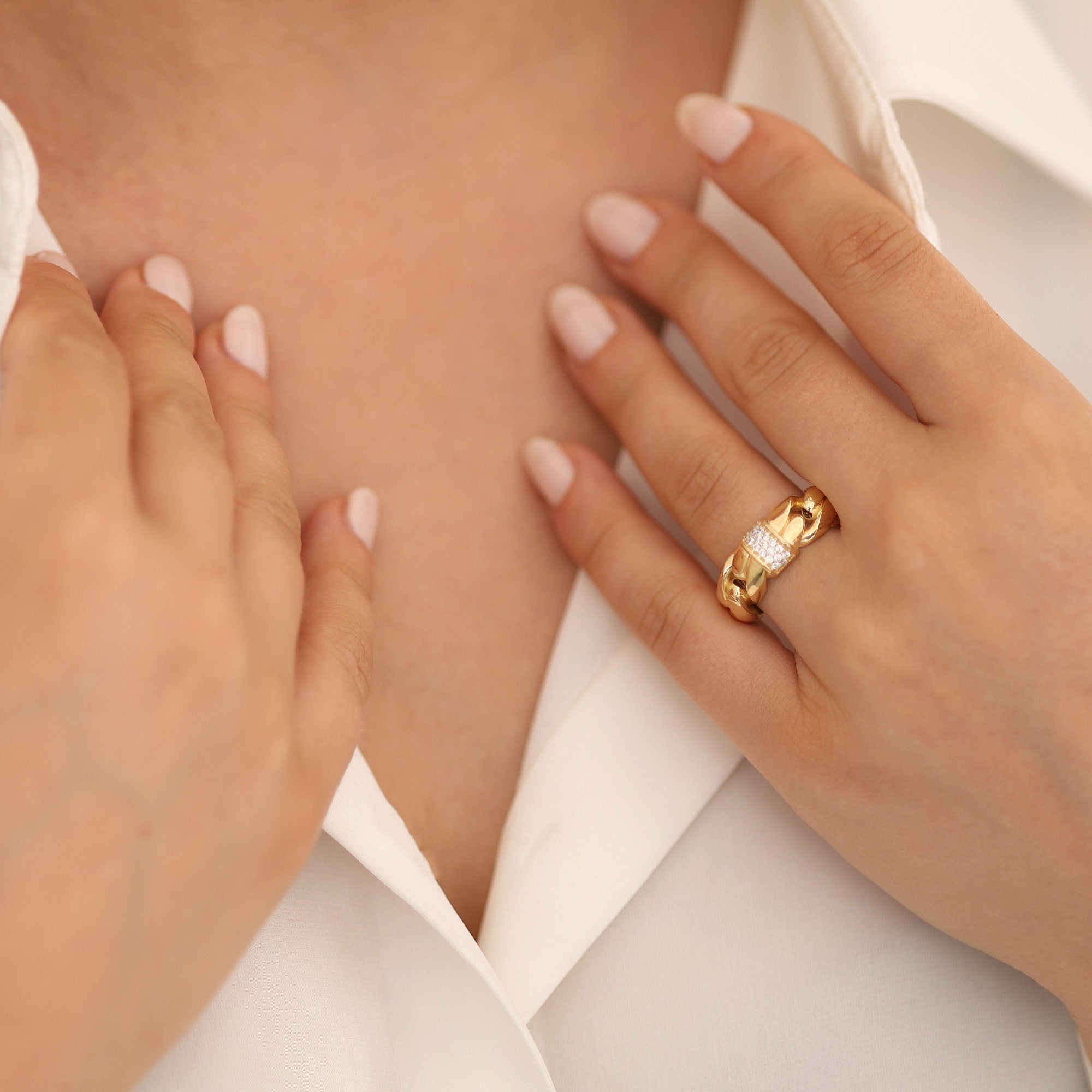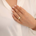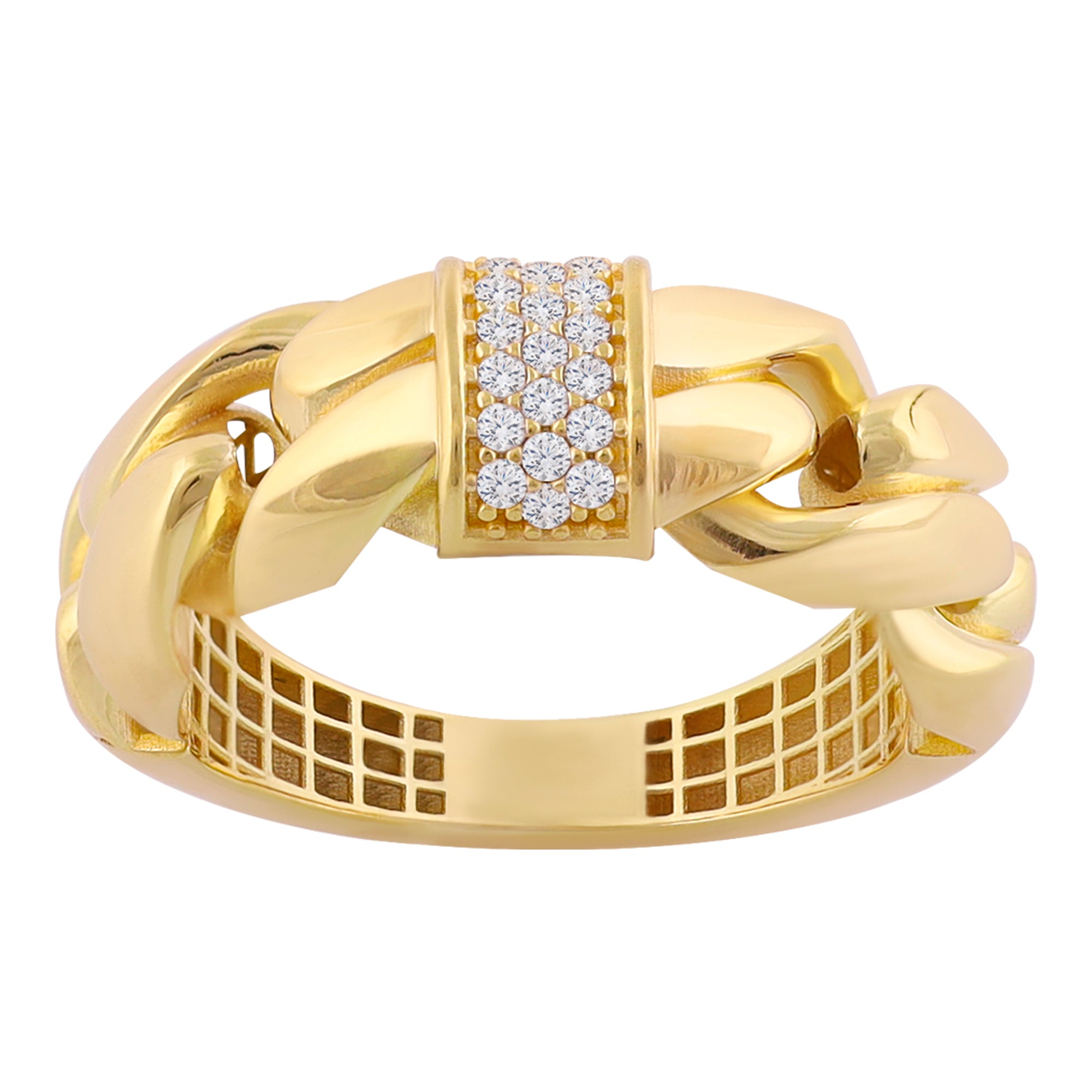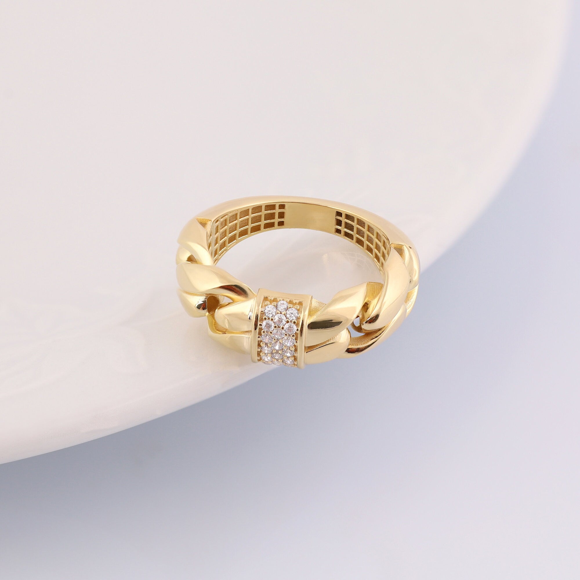 Enjoy the enchantment of our 14k Gold Curled Ring. This sophisticated ring features a delicate curled pattern embellished with glittering cubic zirconia jewels, adding a touch of elegance to any occasion. Meticulously crafted with curving gold parts that interconnect and hug the center, it creates a captivating visual impact. Perfect for showcasing classic elegance, this versatile ring is ideal for both casual and formal wear.