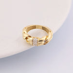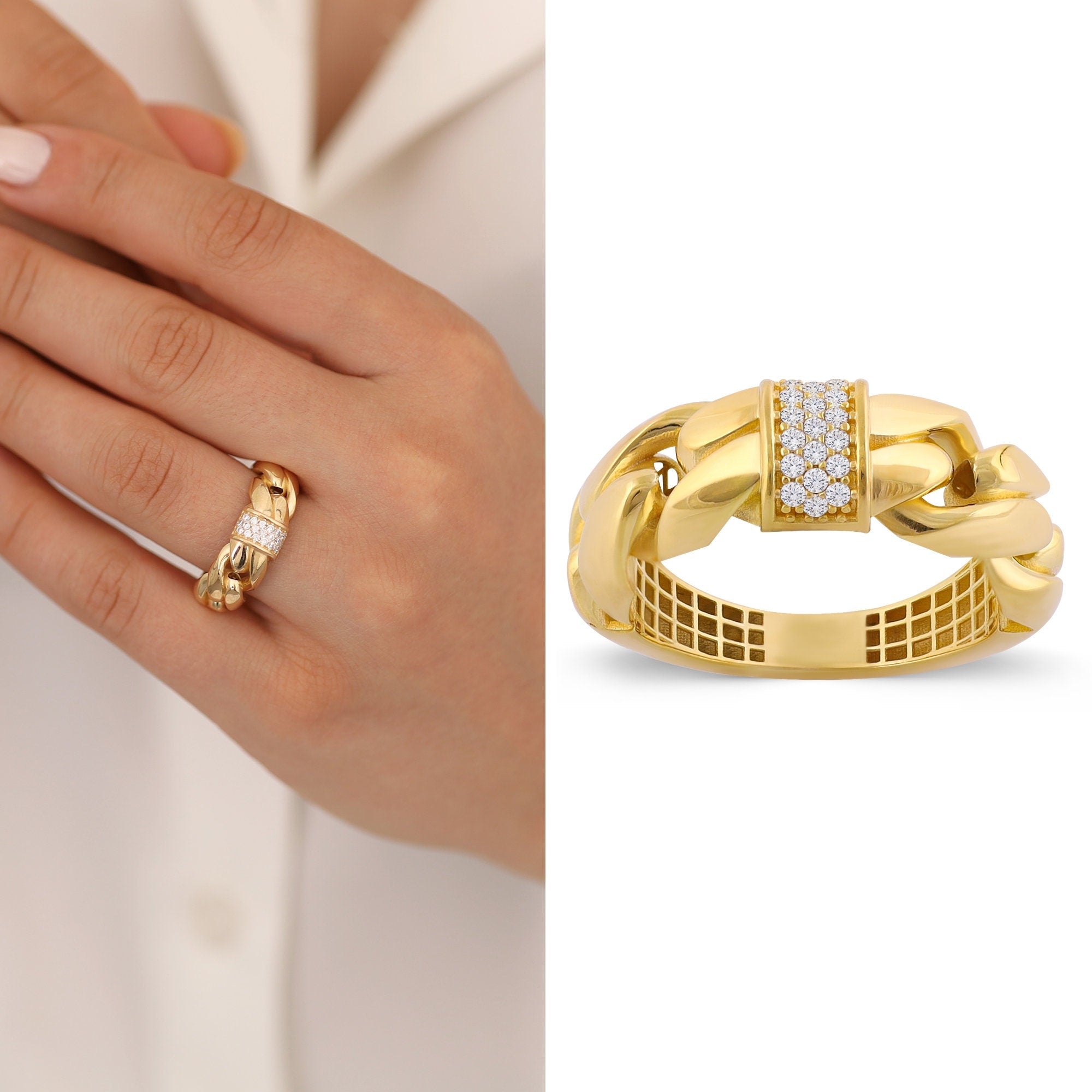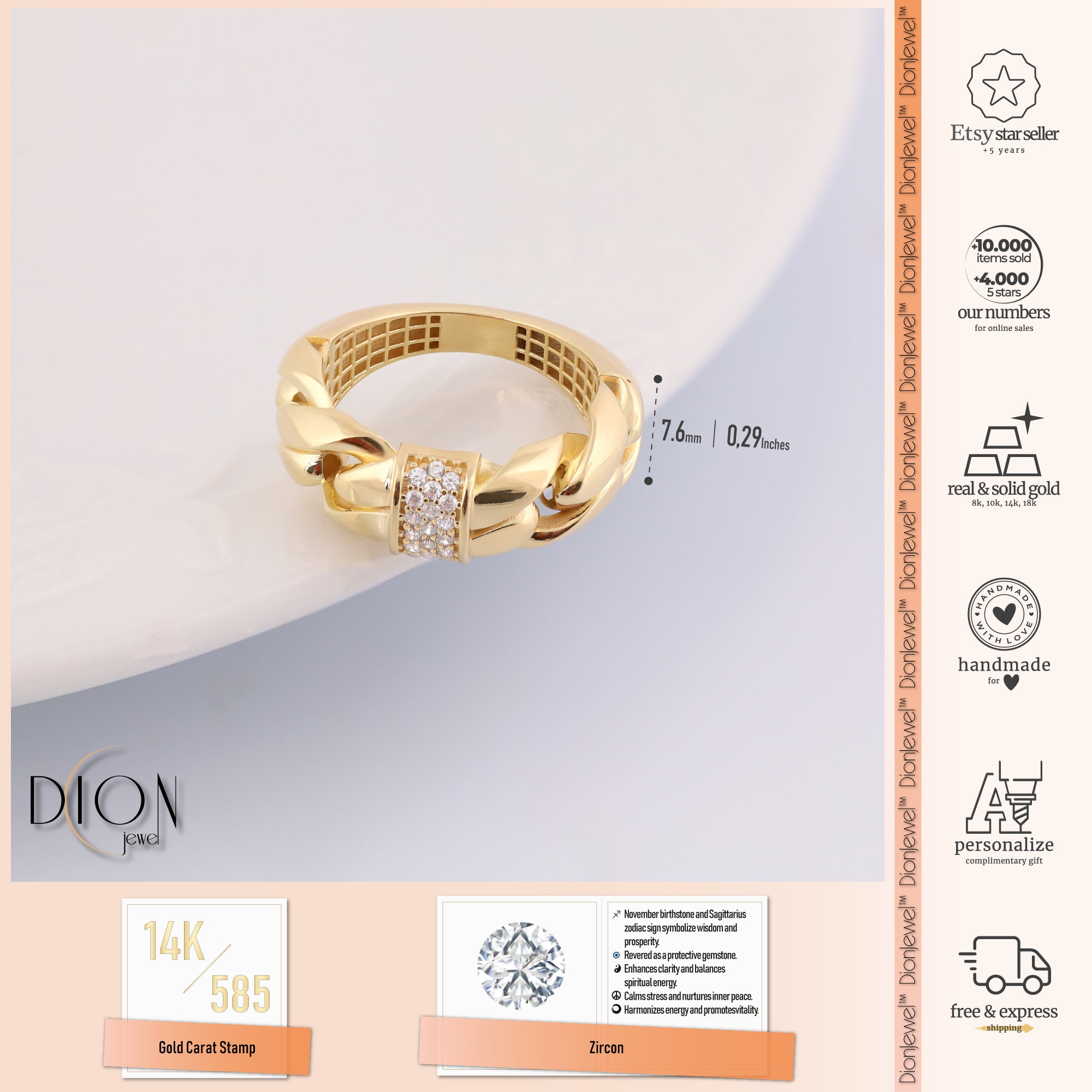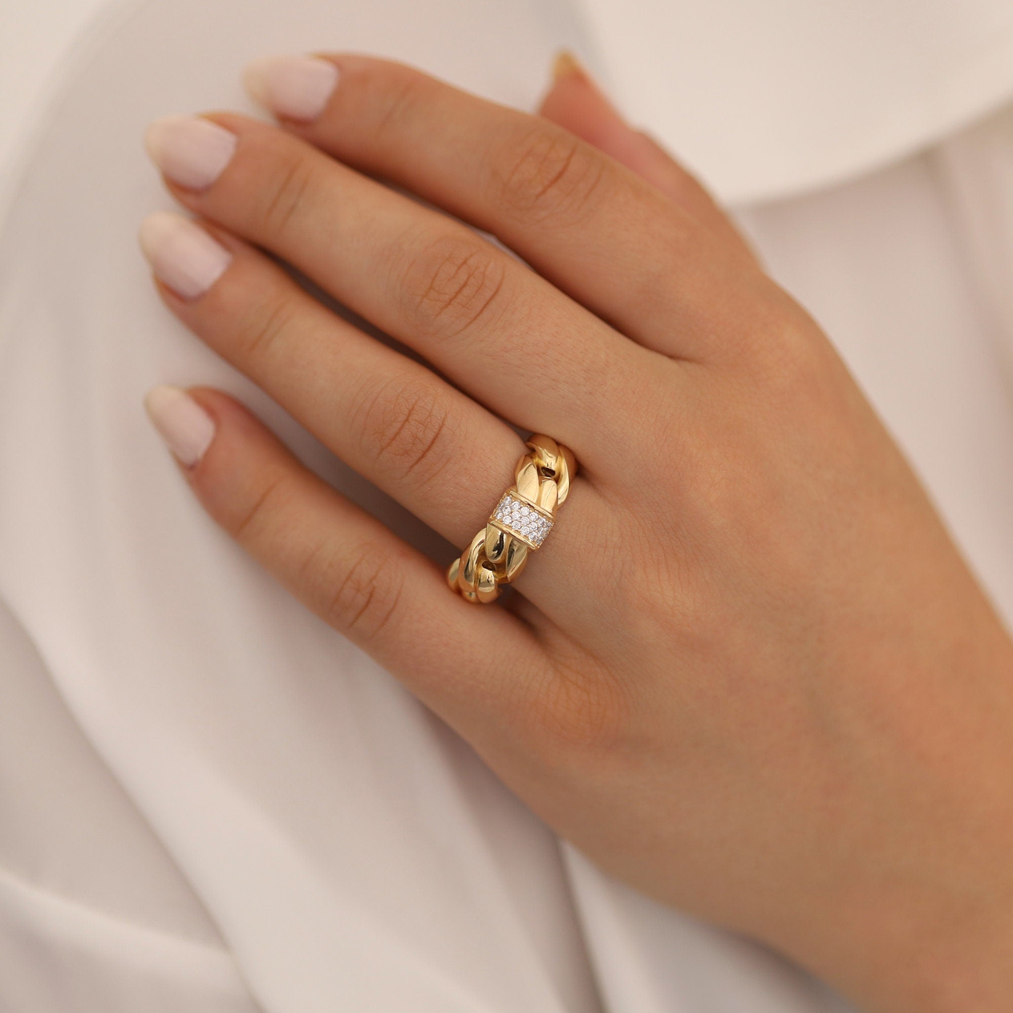 Enjoy the enchantment of our 14k Gold Curled Ring. This sophisticated ring features a delicate curled pattern embellished with glittering cubic zirconia jewels, adding a touch of elegance to any occasion. Meticulously crafted with curving gold parts that interconnect and hug the center, it creates a captivating visual impact. Perfect for showcasing classic elegance, this versatile ring is ideal for both casual and formal wear.
