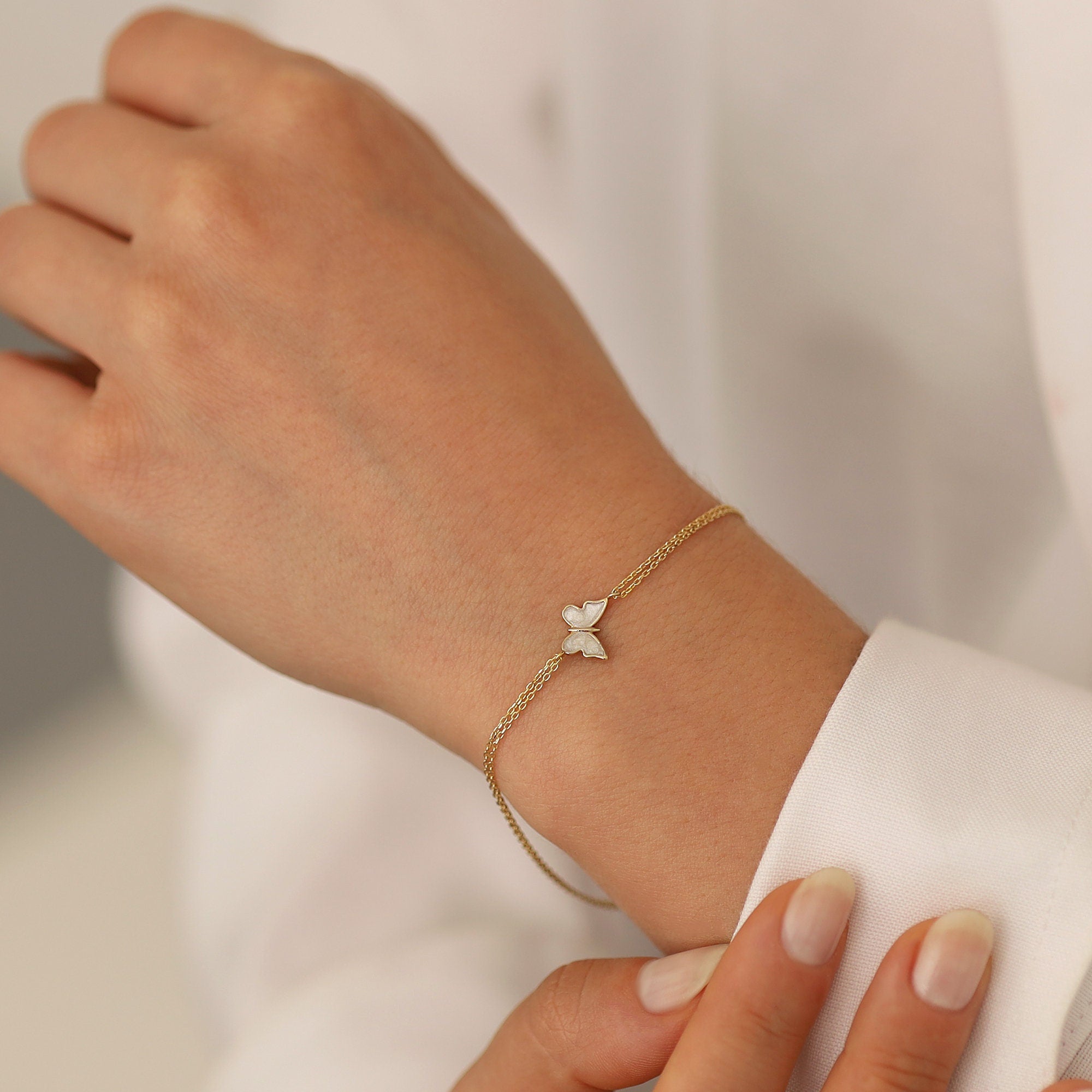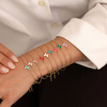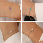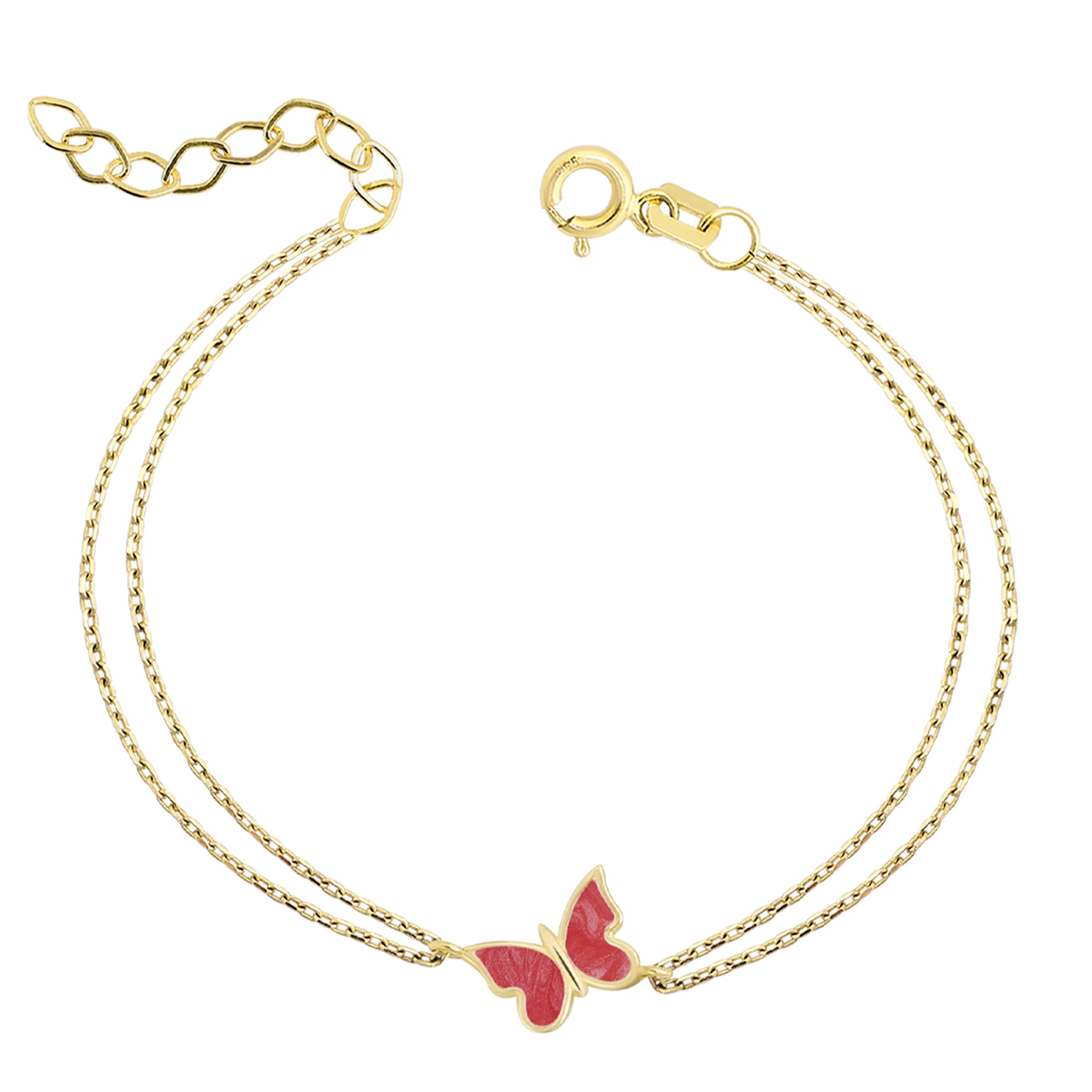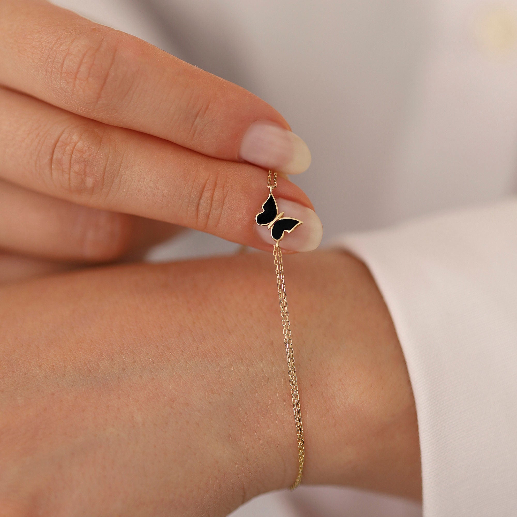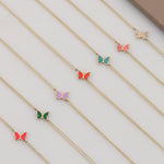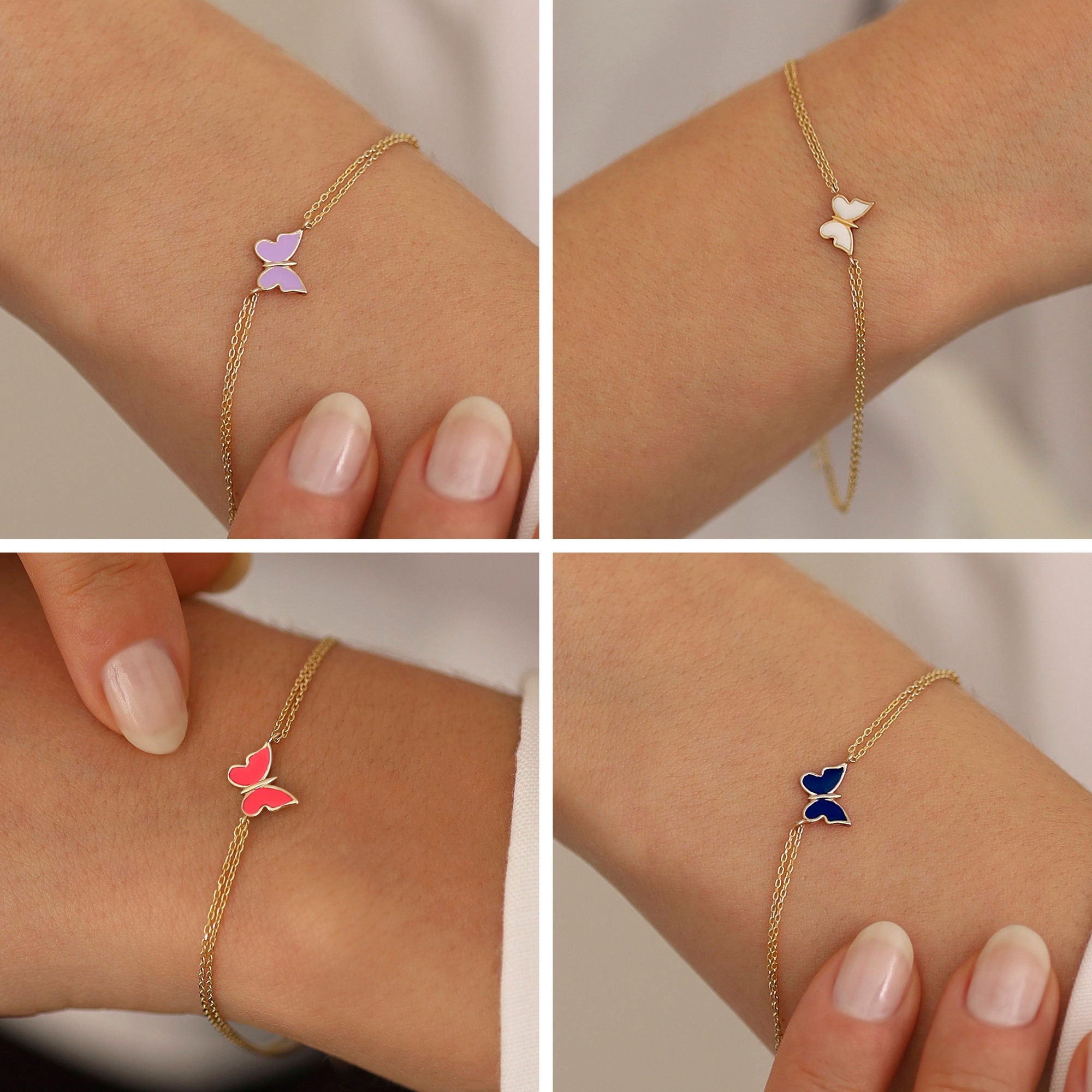Add a vibrant touch to your collection with the 14k Gold Colorful Butterfly Bracelet. This handmade bracelet features intricately designed enamel butterflies in various colors, symbolizing transformation and joy. Ideal for everyday wear or special occasions, it celebrates life's beauty and the bonds of love. An adjustable extension ensures a perfect fit, while exquisite craftsmanship adds a whimsical yet elegant flair to your style. Perfect as a thoughtful gift for loved ones.