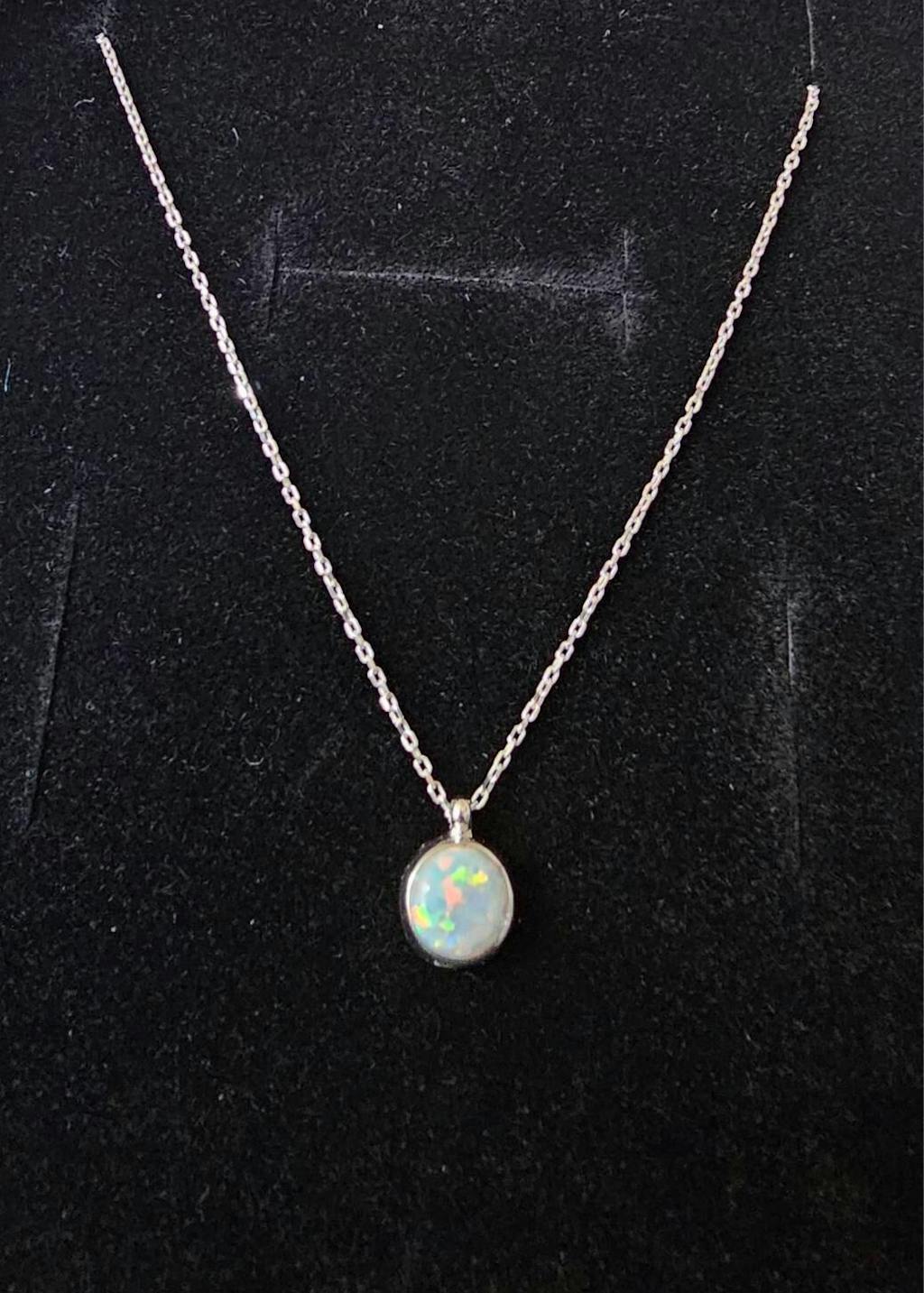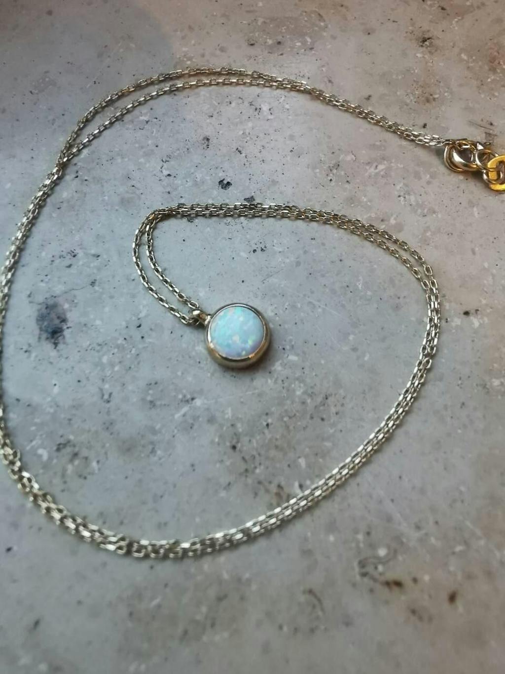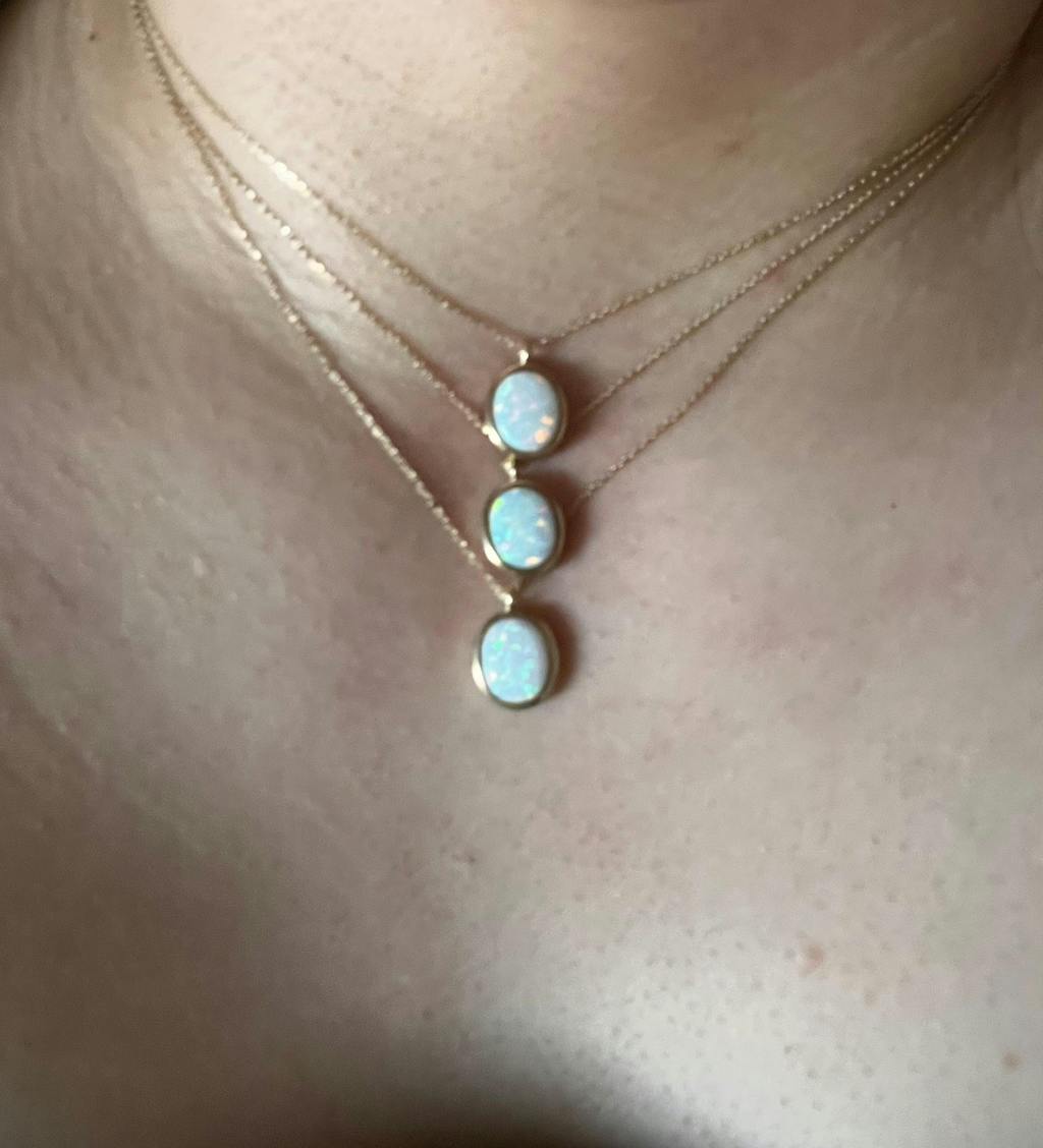 14k Gold | 12mm Oval White Opal Necklace