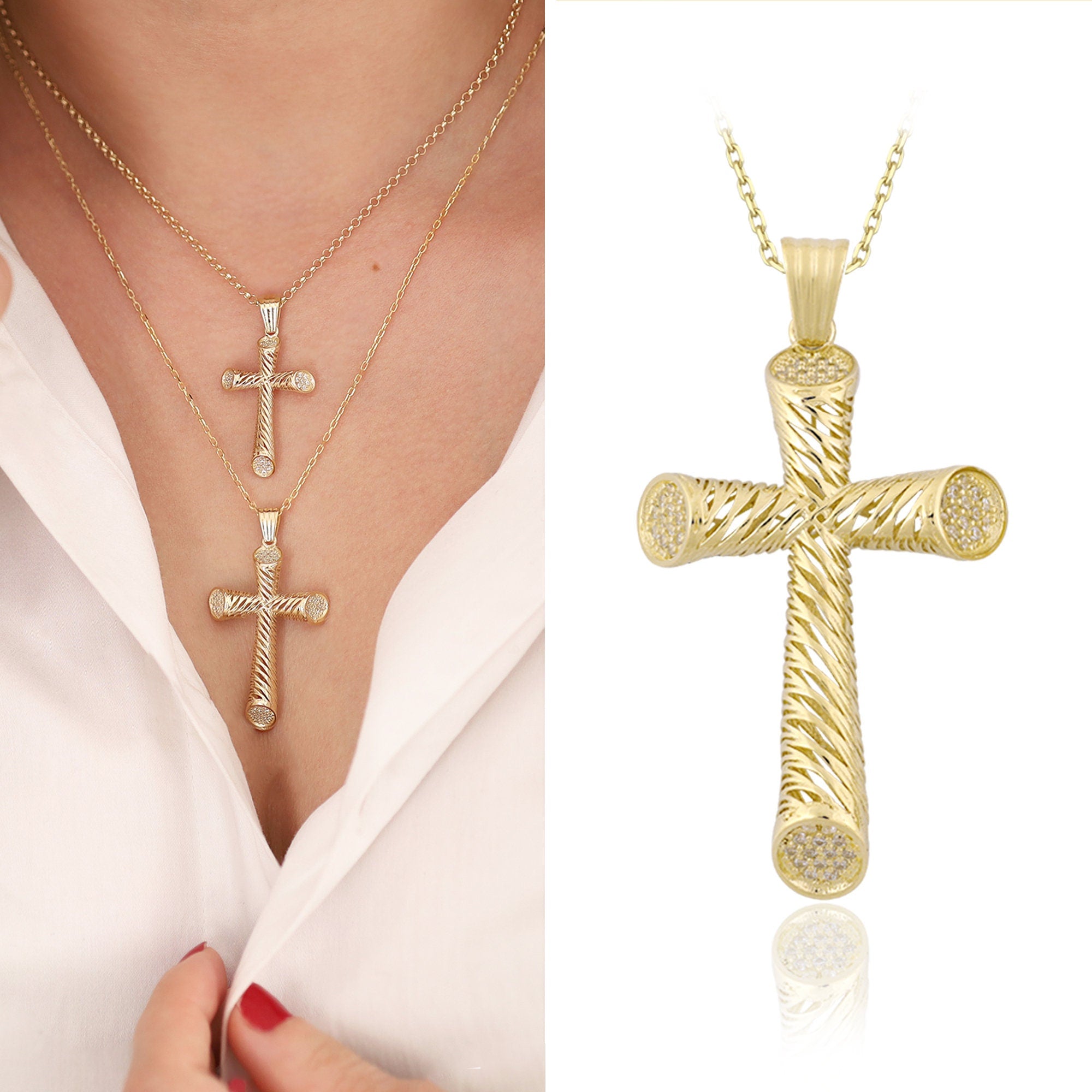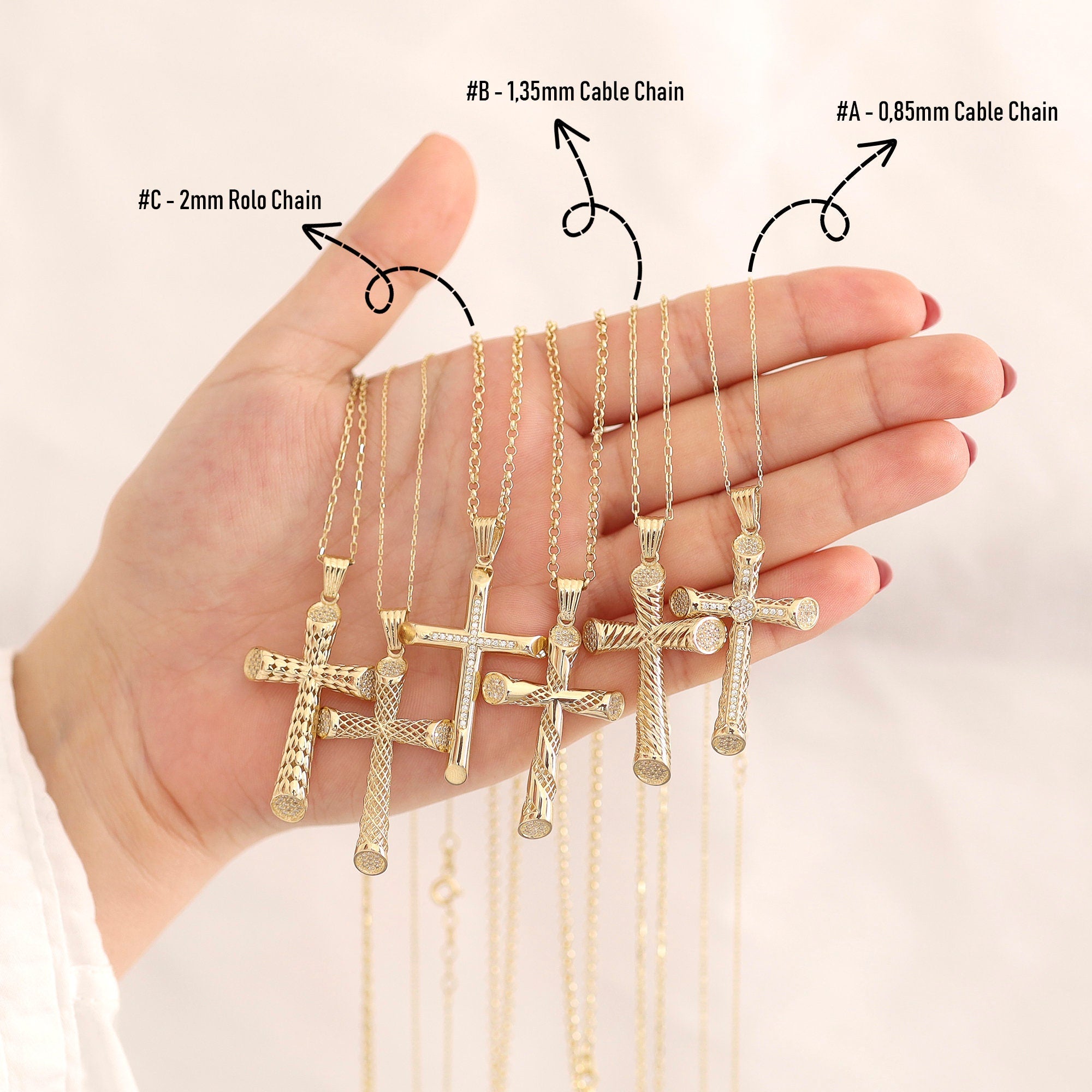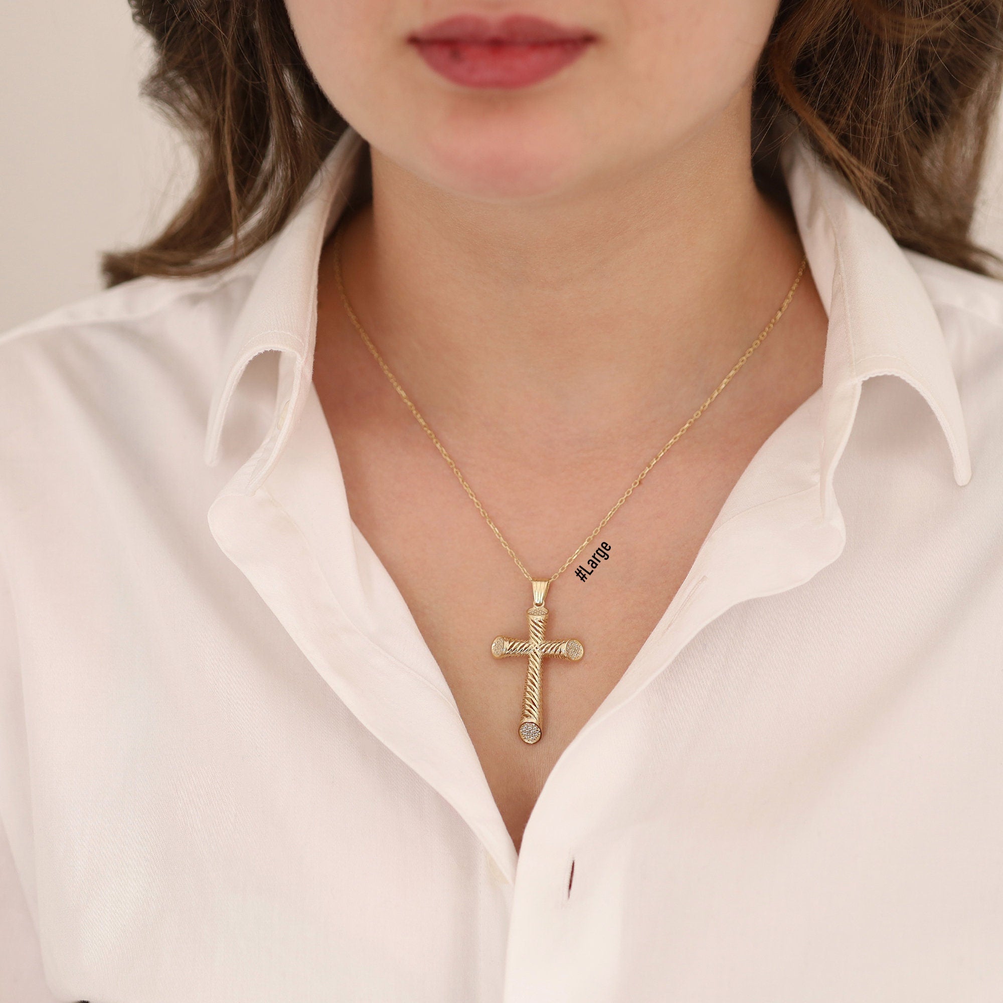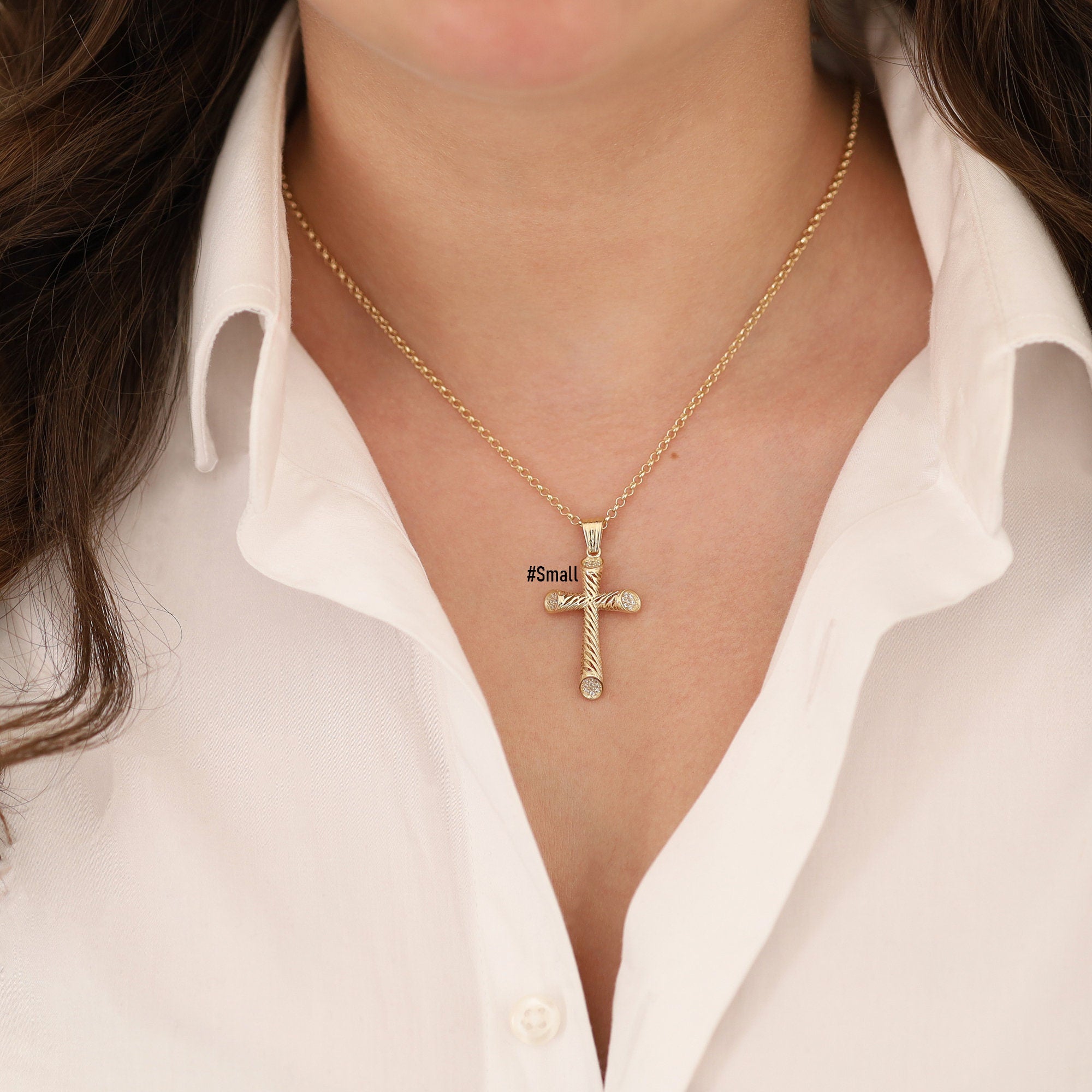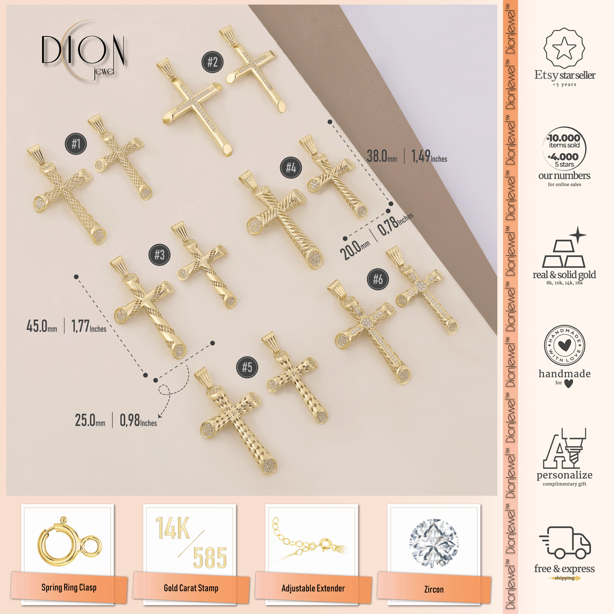 Discover the 14k Gold 3D Crucifix Pendant, a powerful symbol of faith and commitment. This handcrafted necklace features a detailed three-dimensional cross with intricate patterns and brilliant cubic zirconia accents. Choose from six distinct cross styles and two size options for the perfect fit. Ideal as a religious gift or personal keepsake, it honors Christ’s sacrifice and inspires strength and love.