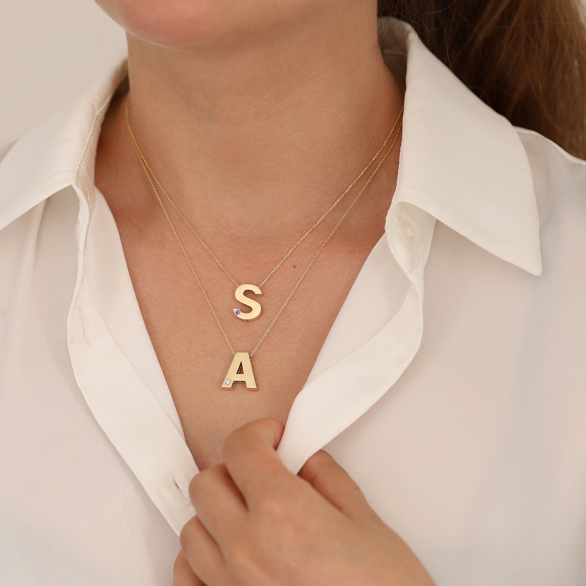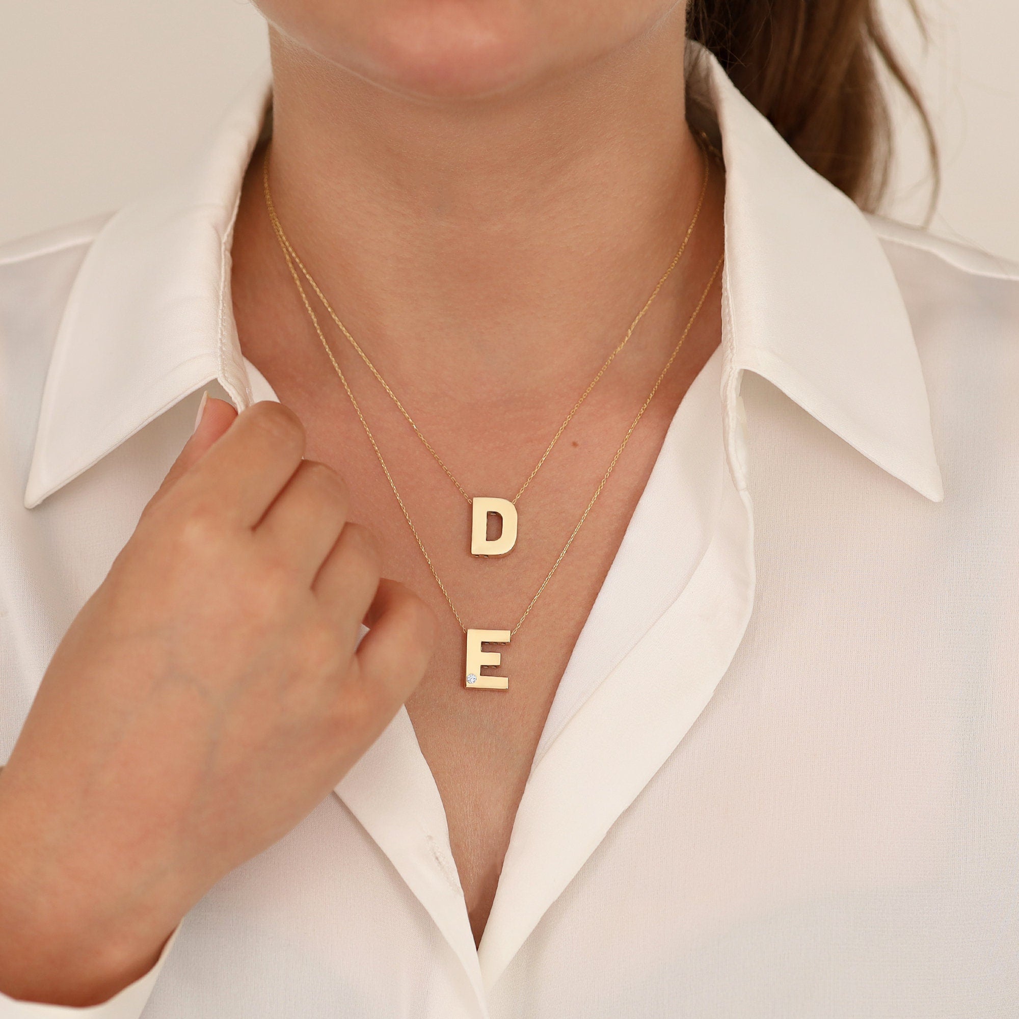 Presenting our lovely 14k Gold Initial Letter Necklace, a personal piece that shows your unique style. Choose your favorite letter to create a one-of-a-kind accessory for special milestones. The pendant's layered design brings a subtle elegance, fitting any outfit or occasion. This necklace speaks to the bond you share with the chosen initial, making it a meaningful keepsake for yourself or a loved one. Enjoy its versatility and simple grace, crafted to last for years of daily wear.