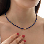 Experience timeless elegance with the 14k Gold Lapis Lazuli Beaded Necklace, featuring celestial blue lapis lazuli stones accented with 14k gold. Revered for wisdom, truth, and protection, lapis lazuli makes this necklace a meaningful accessory or thoughtful gift, especially for Capricorn birthdays.