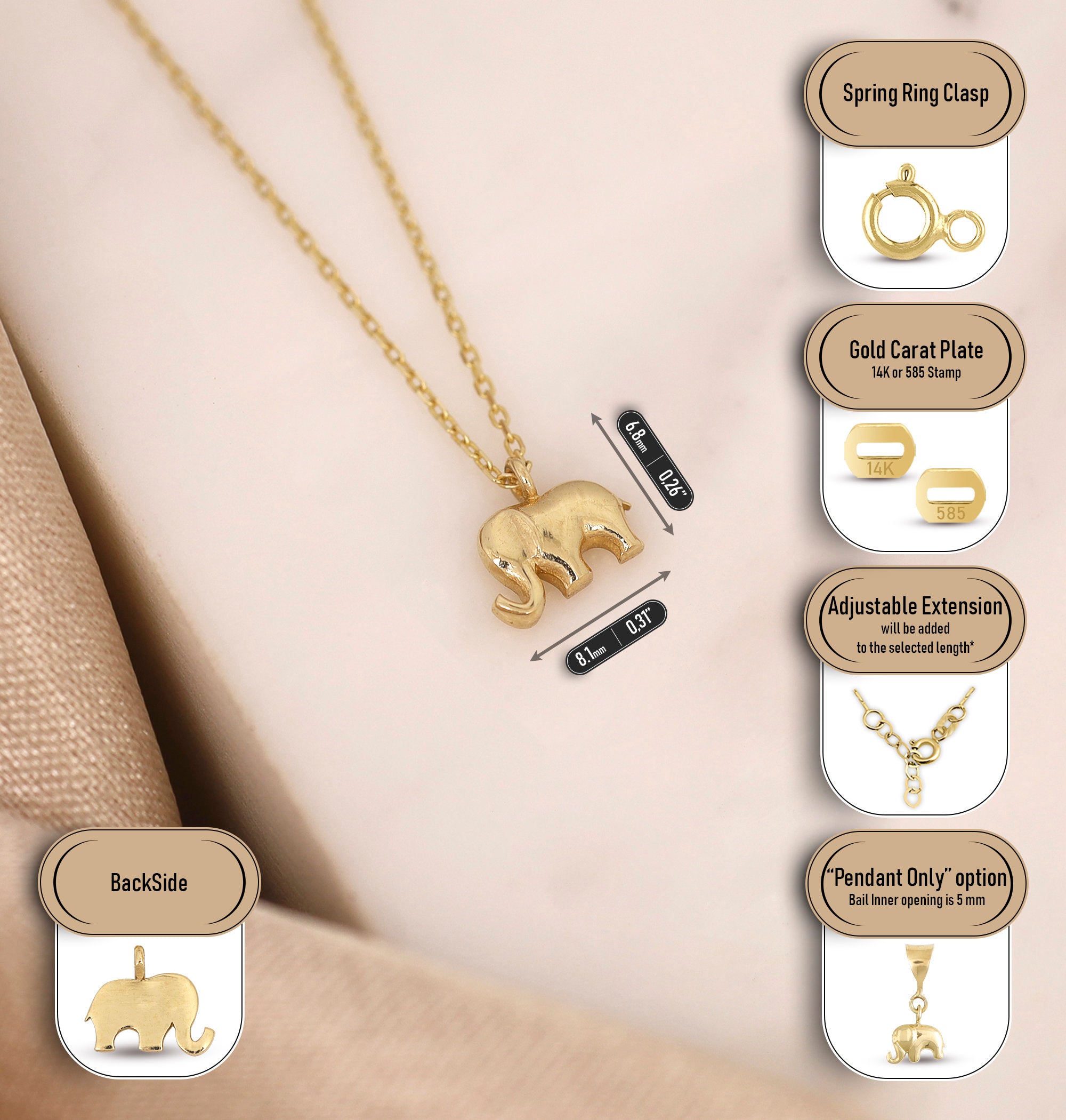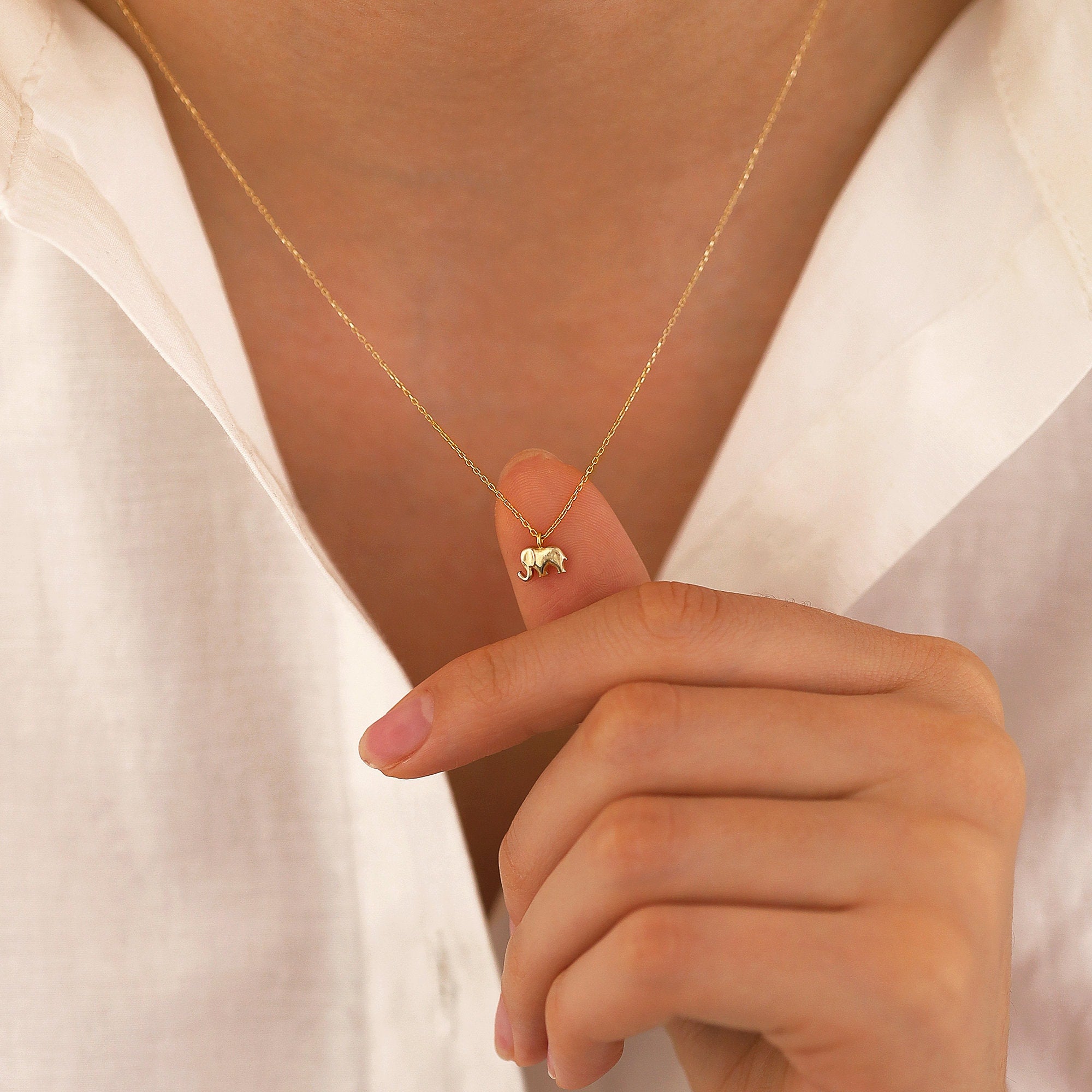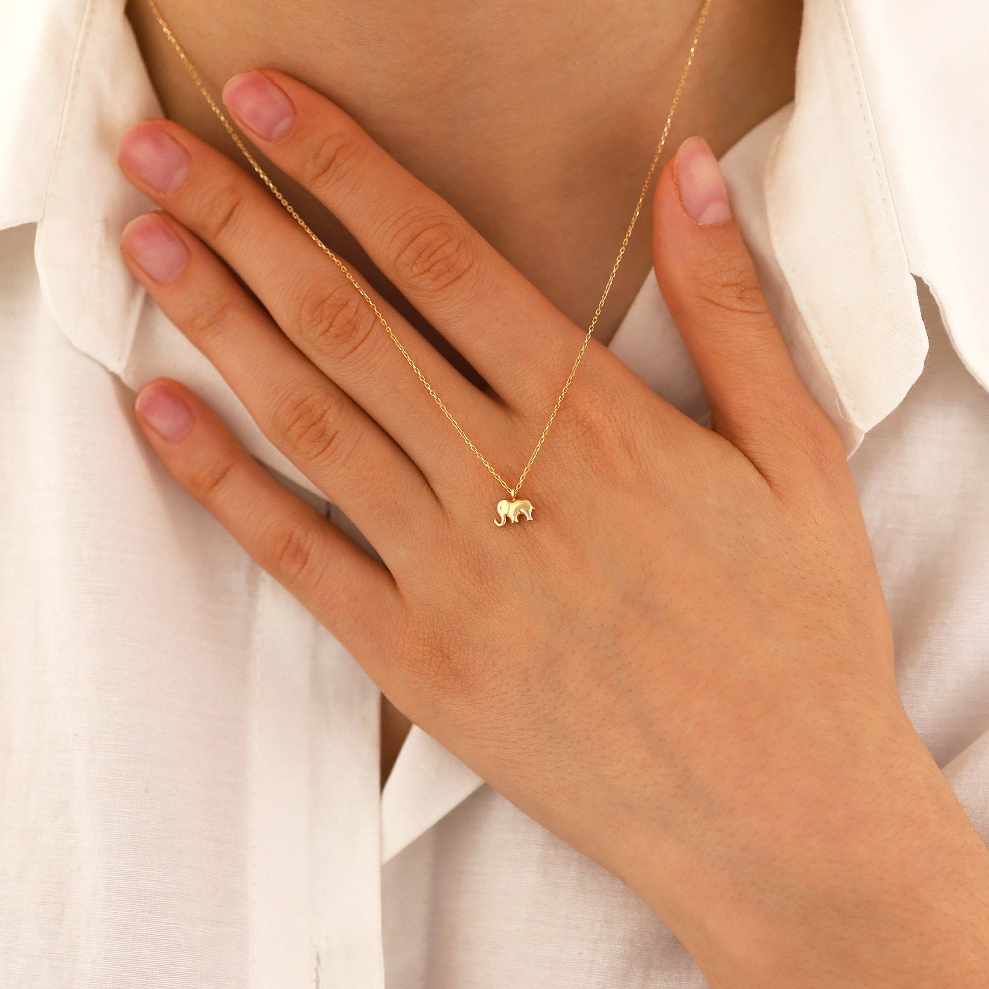 Adorn yourself with the natural beauty of our 14k Gold Minimal Elephant Necklace. This stunning necklace features a delicate elephant pendant, symbolizing strength, wisdom, and good luck. Crafted from high-quality 14k gold, available in Yellow Gold, Rose Gold, and White Gold, its minimalist design makes it a versatile accessory for any outfit. A heartfelt gift for loved ones, symbolizing loyalty and unity.